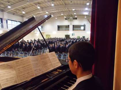 校歌斉唱の場面 放送室