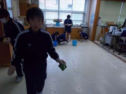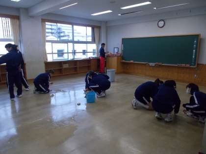 1年生は保健室や理科室、教室、 階段などの掃除を丁寧に行いました。