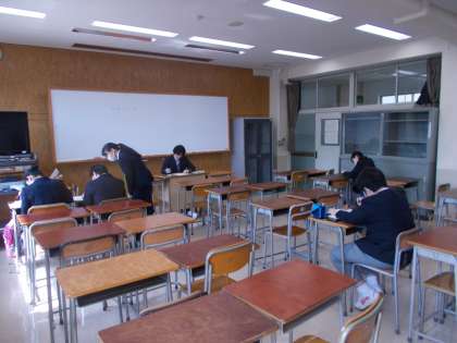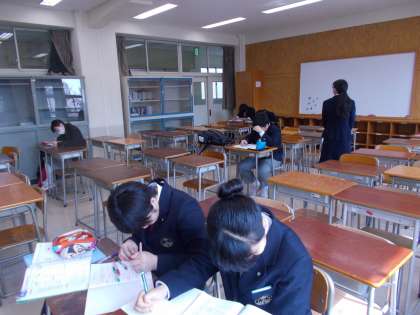 学習支援教室で頑張っている 生徒諸君です。 教室から見える桜が満開です。