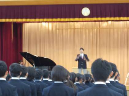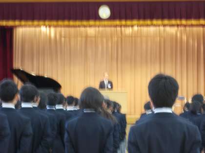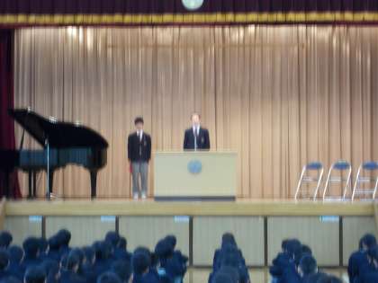 始業式では、校長から2・3年生が三宿中学校の