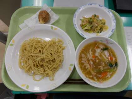 いただきます直後の一年生、みんなお腹がペコペコですね。