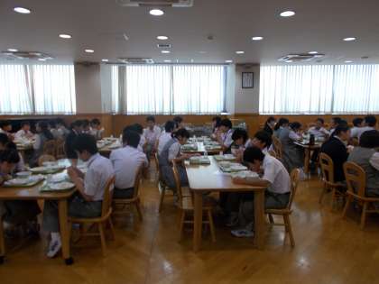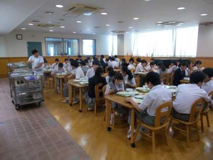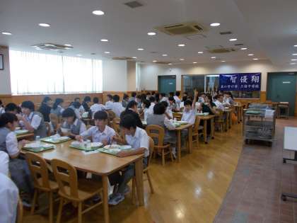 今日は、二年生がランチルーム給食です。みんな、楽しそうです。