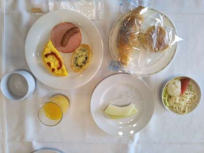 生徒が気持ちのよいあいさつとともに 元気に集合してきました。 本日の朝食は洋食です。