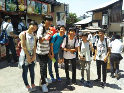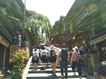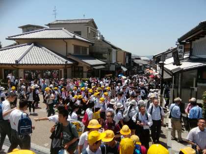 産年坂から、参道を通って清水寺に向かう 途中で三宿中生をキャッチしました。