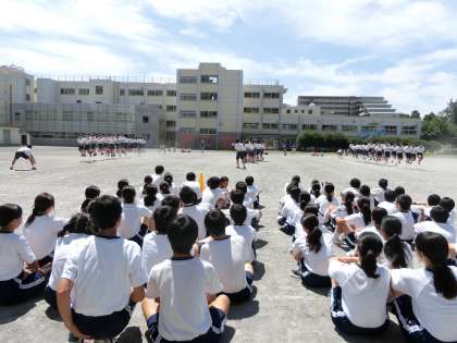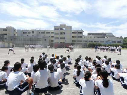 体育大会全体練習 公開日 2018/06/01 更新日 2018/06/01 学校日記 三宿競技(大縄跳び)では3年生が登場すると ひときわ大きな歓声があがりました。 生徒は水筒を持参して、適宜水分補給をして います。 いいね(0)