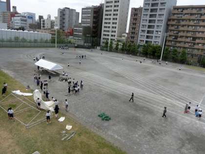 梅雨が近づきつつある東京ですが、気象情報によれば、明日は何とか雨にやられることはなさそうです。午後から、明日の体育大会の準備が始まりました。