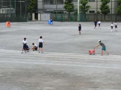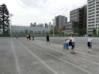 ラインを引くのも、生徒と教師が一緒になって準備をします。