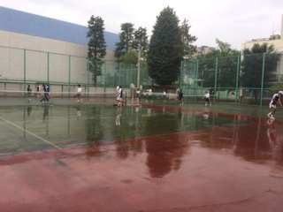 あいにく朝から雨が降ったり止んだりのお天気でしたが、部員総動員で水はけをしてスタート。何度か中断をはさみながら、1回戦は千歳中に勝利、2回戦の途中で、雨が酷くなり順延となりました。