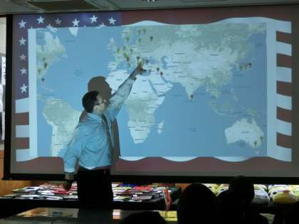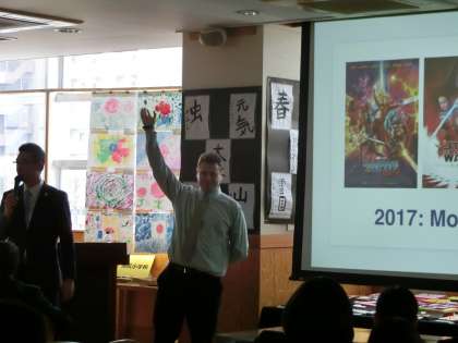 アメリカ大使館の方を呼んで、授業をしていただきました。アメリカは、今でも留学生の招聘を行っています。英語圏が、アジアやオセアニアに広がっている現状で、日本からの留学生を増やしたいと考えています。三宿中学校の生徒にとってもアメリカを身近に感じられる楽しい授業でした。