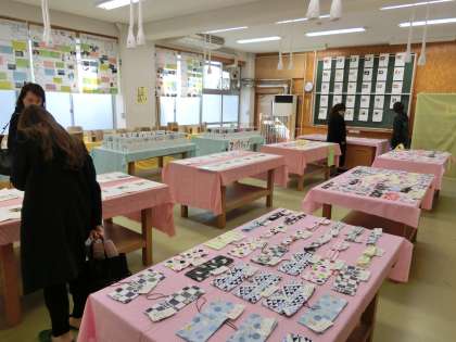 展示と保護者の方の見守りの様子です。保護者の皆様、ありがとうございます。