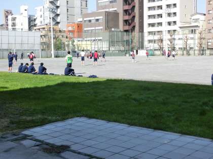 3年生 球技大会 グランドでサッカーをしている様子です。