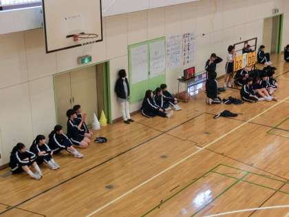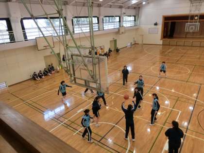 3年生 球技大会 体育館でバスケットボールをする様子です。