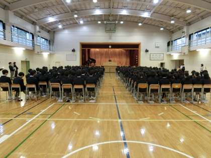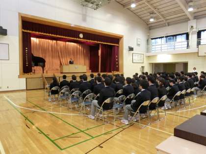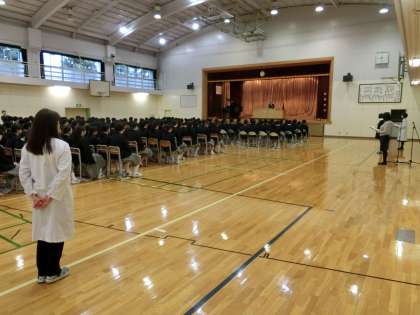 朝会のあと、1・2年生は卒業式の練習をする関係で、今日は座っての朝会になります。