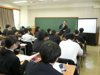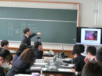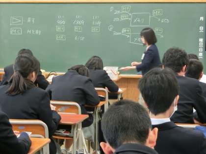中学2年生を対象に、高校の先生による授業が行われました。理科と数学と商業です。