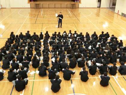 新入生はとても興味深く聞いていました。