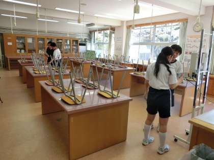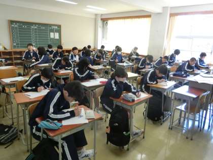 別会場の、聴力検査です。みんなが整然と行動したおかげで、早く終わりました。教室で作文を書きました。片付けもスムーズに身体計測は終了しました。