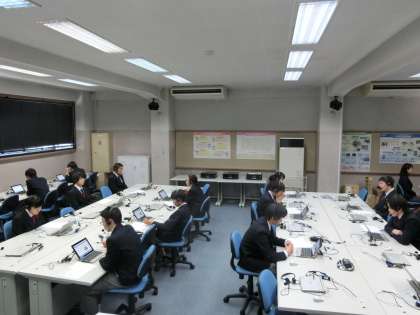 教室で、生と質問用紙に答えて、各クラス15人ずつPC室にきて実施しました。