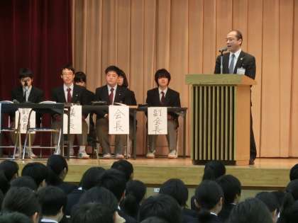 校長先生からは、生徒総会は、皆さんが生徒会の会員なのだから、皆さんで三宿中を良くするにはという視点で話し合いをしてほしいという話がありました。
