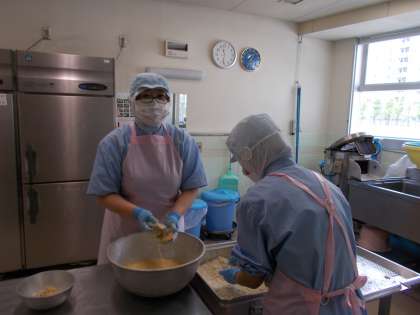 いつも丁寧な仕事でがんばってくれます 公開日 2019/05/16 更新日 2019/05/16 給食 この日はパン粉つけと配缶です。 各クラス間違えないように確認しながら 配缶をしてくれていました。 いいね(0)