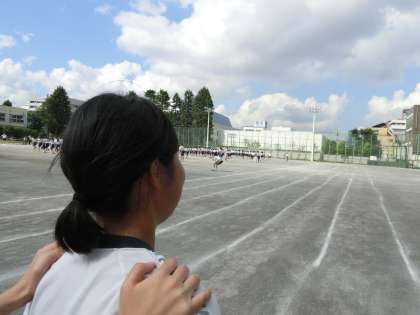 大ムカデ先頭の目線 公開日 2019/05/17 更新日 2019/05/17 学校日記 大ムカデの先頭生徒の目線です。 ひたすらに前を見つめて、突き進みます。 生徒の様々な想いが交錯するのもまた、 体育大会の学年種目です。 いいね(0)
