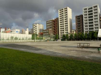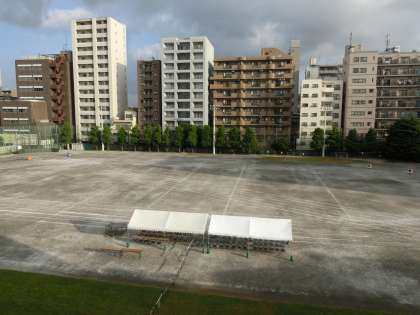 都会の真ん中にあるのに、実に三宿中のグランドは、写真映えします。こんな素晴らしいグランドで体育大会が出来る三宿中生は幸せだと思います。今日も暑くなりそうです。また生徒の熱気で熱くもなりそうです。水分補給など、熱中症対策と準備体操をしっかりやって、精一杯力を出し尽くす競技を期待しています。保護者・地域の皆様もぜひ日頃の成果をご覧ください。こちらも、熱中症対策お忘れなきよういらしてください。