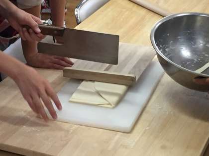 平にしたものを食べるサイズに切っていよいよ出来上がりです。