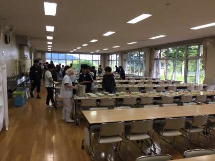 食事の準備です、食事係は食事を、水筒係は夜の水分を補給してくれています