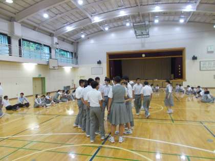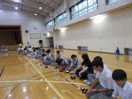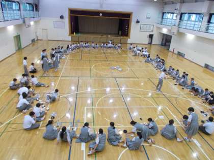お弁当箱を持って楽しそうに体育館に向かいました。