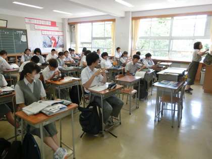 英語は、ALTが、スピーキングのテストをする傍らで、授業を展開させています。ALTをうまく活用しています。