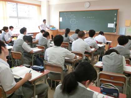 今日から、定期考査一週間前です。原則として部活動は中止になります。学習にも真剣みが増してくる時期です。まずは、3年生の授業の様子です。