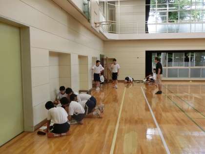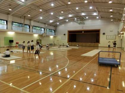 C組は体育です。女子はマット運動、男子は体力測定です。