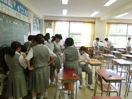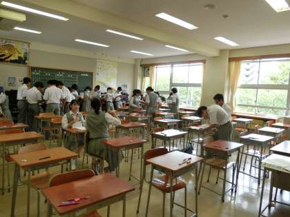 3年生の、休み時間の様子です。なぜか後ろに固まって勉強していました。