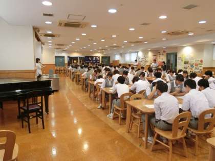 1時間目の学級活動の時間に、3年生はランチルームで修学旅行の説明がありました。