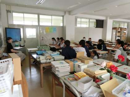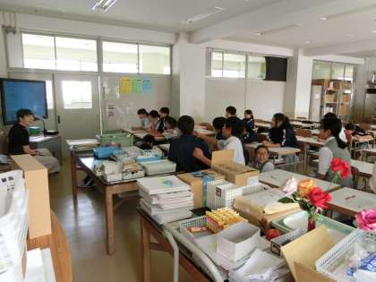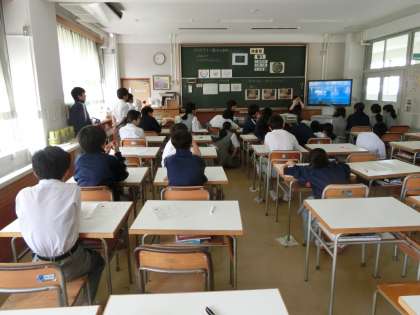 ICTを活用して、一人ひとりの作品を互いに鑑賞する授業です。