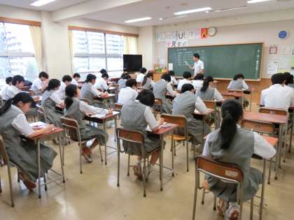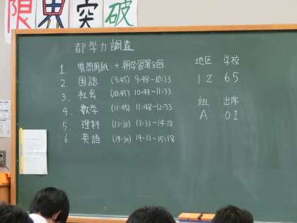 東京都学力調査に先立ち、一時間目は生徒への学習を中心とした意識調査です。様子をご覧ください。