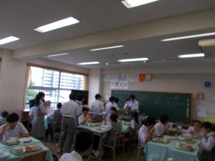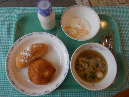 春雨スープを3倍も食べた生徒は嬉しそうに