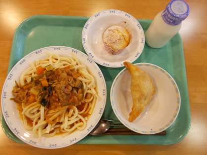 今日はラグマンという麺料理、サモサという揚げ餃子に似たものを