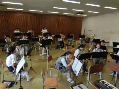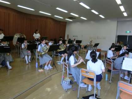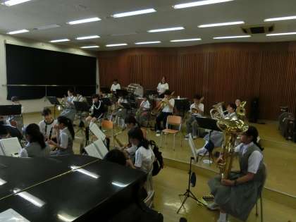 吹奏楽部です。大会が近づいているので、合同の練習です。