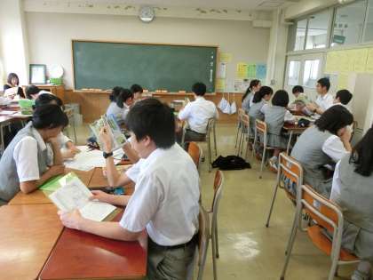 今日は、総合の時間と入れ替えて、修学旅行のコースをみんなで調べています。楽しい時間です。