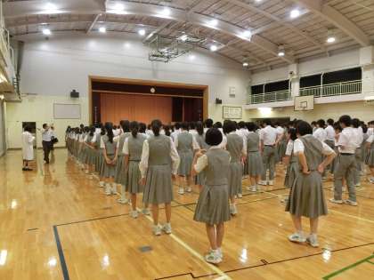 暴風警報が解除されたので、学校は平常授業です。JRや私鉄が動かないので朝に間に合わない教員がいました。体育館で全校で朝の学級活動を行いました。校長先生から、緊急時の対応について講話がありました。また生徒会役員の候補者の挨拶もやりました。