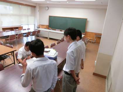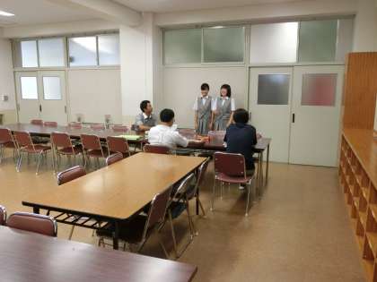 25日から3日間行われる職場体験の事前訪問を実施しました。帰校して、学年の先生に報告を行っているところです。