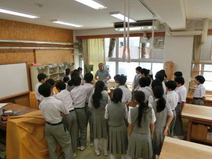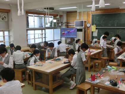 ニスをほとんどの生徒が塗り終えて、金具を木材に取り付ける工程です。
