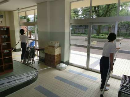 学校内でも、学校の用務を全般的にやっているMYカンパニーで職場体験を実施させていただいています。一生懸命清掃活動を手伝っていました。