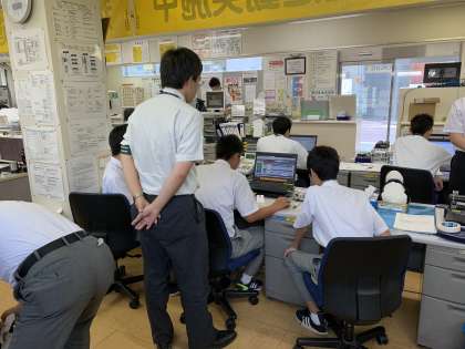 バスの営業所での体験です。忘れ物の事務処理をしているところです。