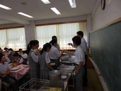 給食室から見える風景とおかわり中 公開日 2019/10/08 更新日 2019/10/08 給食 給食室に入っていると体育の様子がよく見えます。 この日は2年女子の体育の準備中。 お天気で気持ちよさそうです。 下は1年生、この日もお代わり中です いいね(0)
