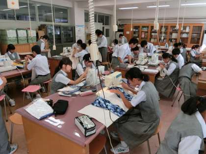 家庭科、裁縫の授業です。ミシンの使い方も教わりました。