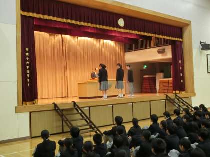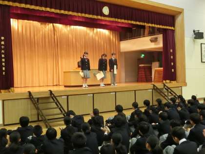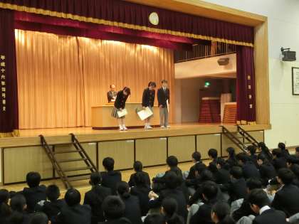 合唱コンクールのポスター賞の発表と表彰がありました。