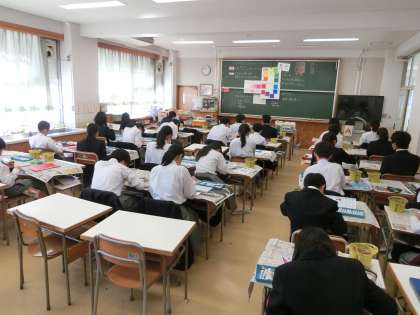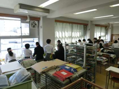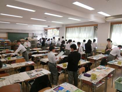 1年生の美術の授業です。授業の最後の部分だったので片付けに入っていました。