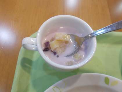 ココナッツデザートのブブチャチャには紫芋とパインが入りタピオカミルクの
