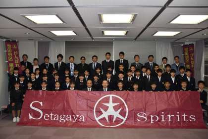 東京駅伝に出場する世田谷区のメンバーの団結式が教育センターで行われました。三宿中の2年生も男子・女子各1名が代表に選ばれました。